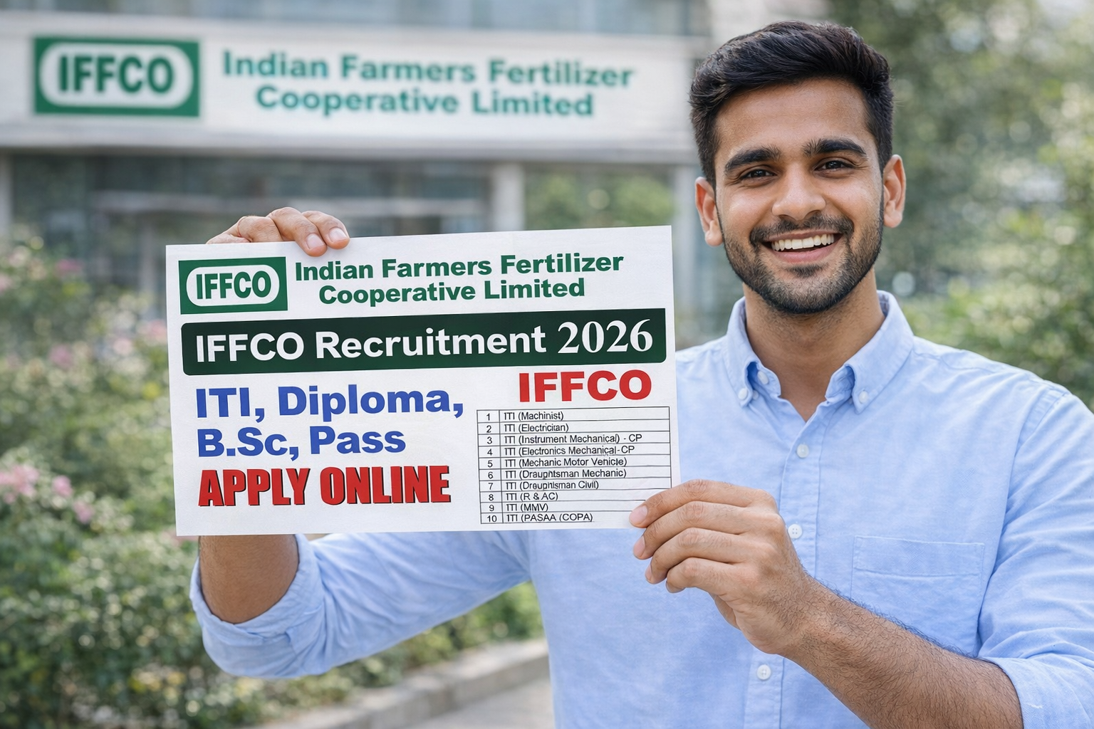 India Farmers Fertilizer Cooperative Ltd. (IFFCO), has released a notification on official website for the recruitment of Phulpur Apprentice Post. IFFCO Application Form has started on 15 January 2026 & the candidates can apply till the 29 January 2026. Minimum age required is 18 Years & The Maximum Age Is 27 Years as on 01 January 2026. Candidates must check the complete details for IFFCO Phulpur Apprentice Recruitment 2026. which has given below.