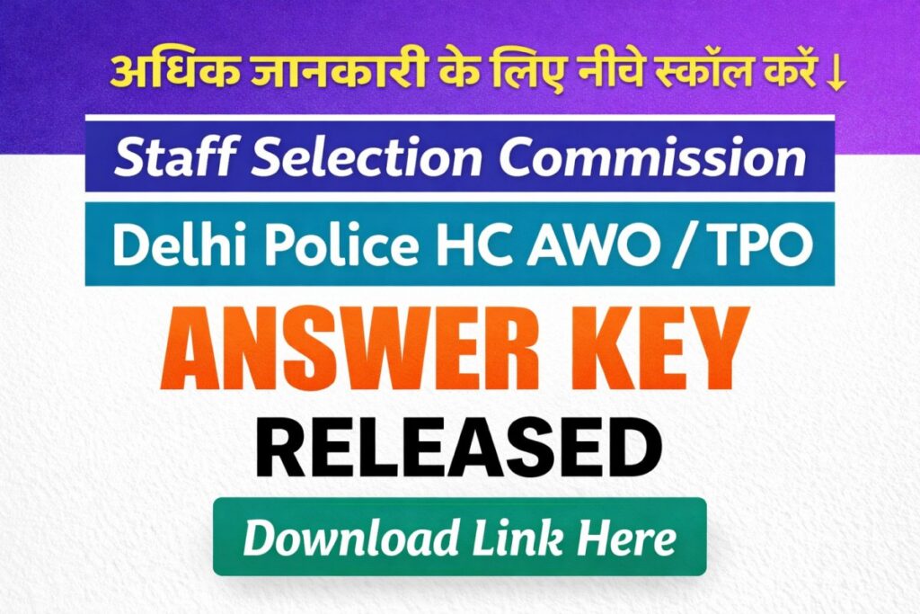 Staff Selection Commission (SSC Delhi Police), has released the Answer Key on its official website for the Recruitment of Head Constable (AWO/TPO) Examination 2025. The Exam was conducted on 15 – 22 January 2026, The SSC application process started on 24 September 2025, and candidates were able to submit their applications until 15 October 2025. Candidates can check their Answer Key using their Enrollment Number, Registration Number, or Date of Birth by logging into the portal. The direct link is provided below.